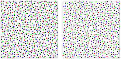 事实证明,每种类型的圆锥体周围都有一个称为“排除区域”的区域,其他圆锥体无法进入该区域。与圆锥体不同,相同类型的圆锥体相互遮挡的程度更大,并且这种不同的排除方式会导致截然不同的圆锥体图案。每种圆锥体的图案都覆盖了另一个圆锥体的图案,从而使编排以有序但无序的方式缠绕在一起-一种均匀的混乱。因此,尽管看起来圆锥体是不规则放置的,但是它们的分布实际上在很长的距离上是均匀的。Torquato说,那是无序的高度均匀性。
