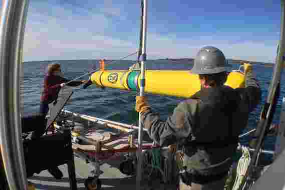 WHOI和MIT研究人员部署了一个自主水下车辆以测试新的导航和传感算法。图像:MSEAS.