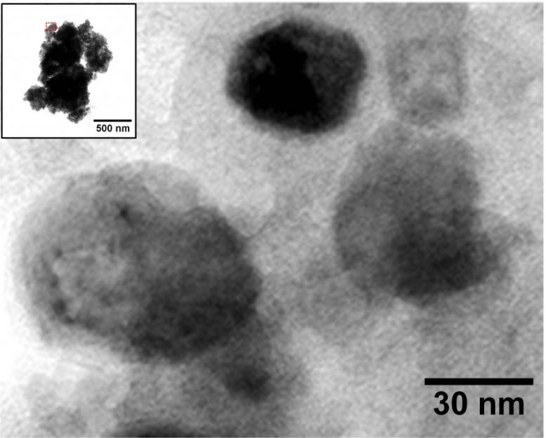 在苏州陨石样品中发现金属铁纳米粒子的电子显微镜图像。