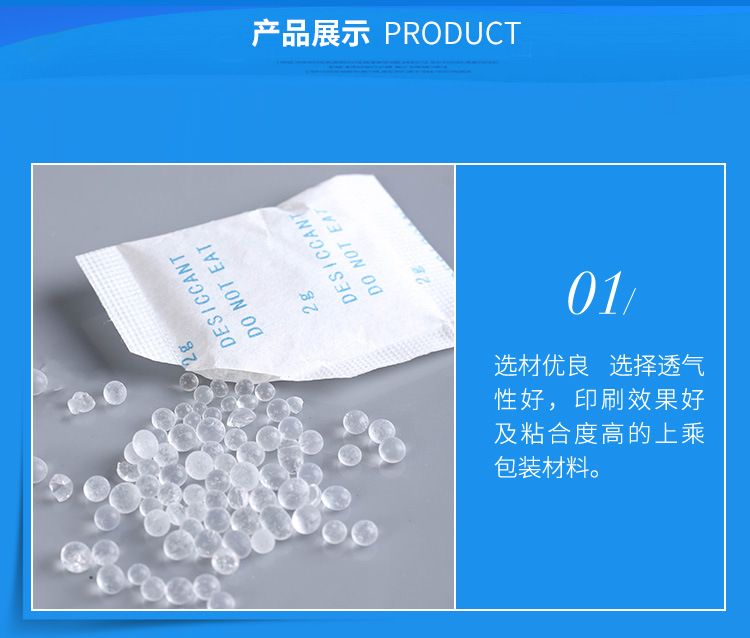 这种干燥剂是一种不同种类的硅胶,包装在透湿袋中。主要原料硅胶是一种高微孔结构的水合二氧化硅,无毒、无味、无臭,化学性质稳定,吸湿性强。因此,广泛用于仪器、仪表、设备、皮革、箱包、鞋类、纺织品、食品、药品等的储存和运输,以控制环境的相对湿度,防止物品受潮、霉变和生锈。 .