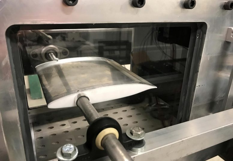 风洞试验段内的格里菲斯式跨音速翼型。