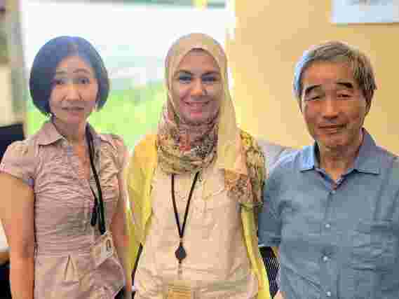 OIST细胞信号单元的研究人员。从左开始,柳谷彰子博士,狄娜·莫斯塔法(Dina Mostafa)博士和山本忠(Tadashi Yamamoto)教授。