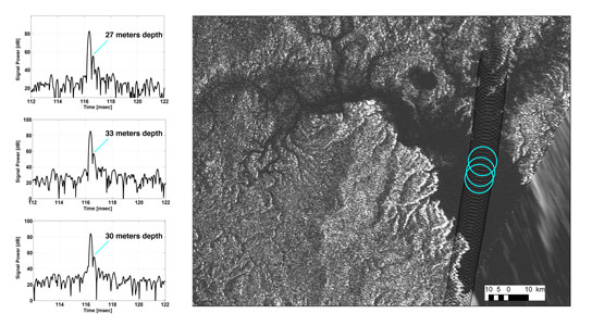 8月Titan Flyby还包括一个旨在通过沿着120英里(200公里)的克拉肯母马的岸边轨道的航天器的雷达仪器来收集Altimetry(或高度)数据的段。对于沿海东部海岸线的25英里(40公里)的这个数据,Cassini的雷达射线射击从海底反弹,回到航天器,揭示了海上的海景。该地区靠近大型洪水河谷的嘴巴,显示深度为66至115英尺(20至35米)。Cassini将在2015年1月最后一次执行此实验,以试图测量旁遮普母马的深度。旁遮普母马是泰坦北部的三个大海中最小的三个大海,唯一的海洋尚未观察到Cassini。