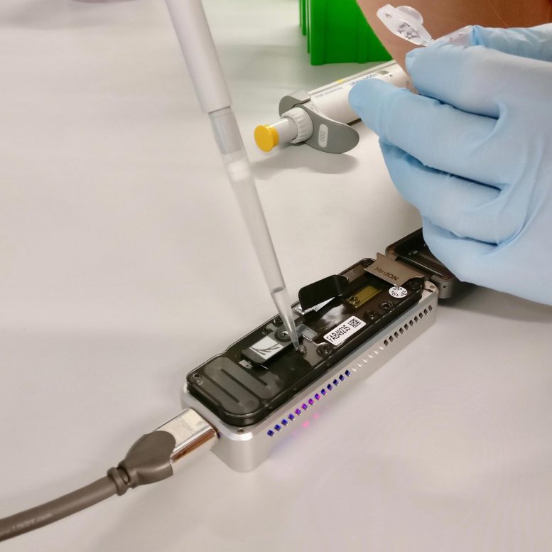 该测序仪具有微小的纳米孔,可以确定DNA序列和表观遗传学特征。