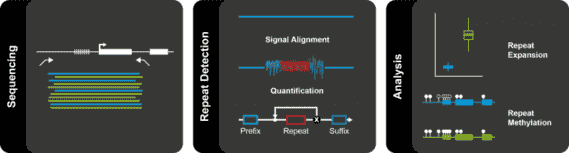 研究人员循序渐进,首先选择性地富集了重复序列的分子,分析了电信号,然后确定了重复序列的长度及其表观遗传学特征。
