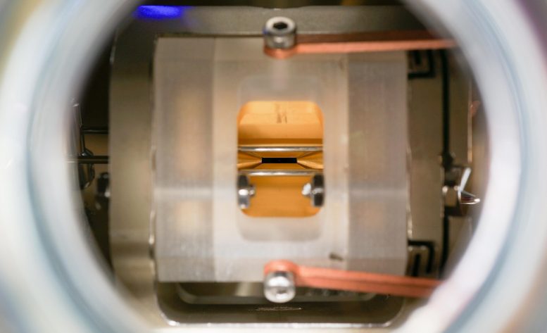 锶离子被困在电场。离子上的测量持续了一百万分之一秒。
