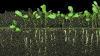 紫花苜蓿芽(包括根和叶)的游戏中时光倒流代表植物的快速生长。