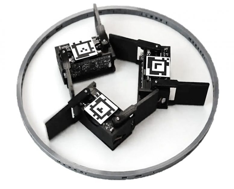 高盛说,“几年后,我看到英格兰举办了一次研讨会,并认为我们的一些智能线机器人可能会证明有价值的测试这个理论。”与Chvykov一起使用,他访问了高盛实验室,博士。学生威廉萨瓦省和Akash Vardhan使用了三个张开的拍拍,将实验与理论进行比较。学生们观察到,而不是完全显示复杂的动态并探索容器,而是将机器人自发地自组织成一些舞蹈 - 例如,一个舞蹈由三个机器人依次拍打彼此的手臂。这些舞蹈可以持续数百瓣,但突然失去稳定性,并被不同模式的舞蹈取代。