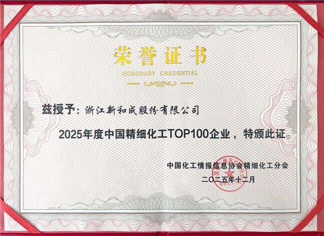 新和成同时荣膺“2025年度中国精细化工TOP100企业”“2025年度中国精细化工创新发展TOP10企业”榜首。此次登顶,既是对新和成综合实力的高度认可,也彰显了新和成在经营管理、创新和绿色发展等方面的硬核实力。