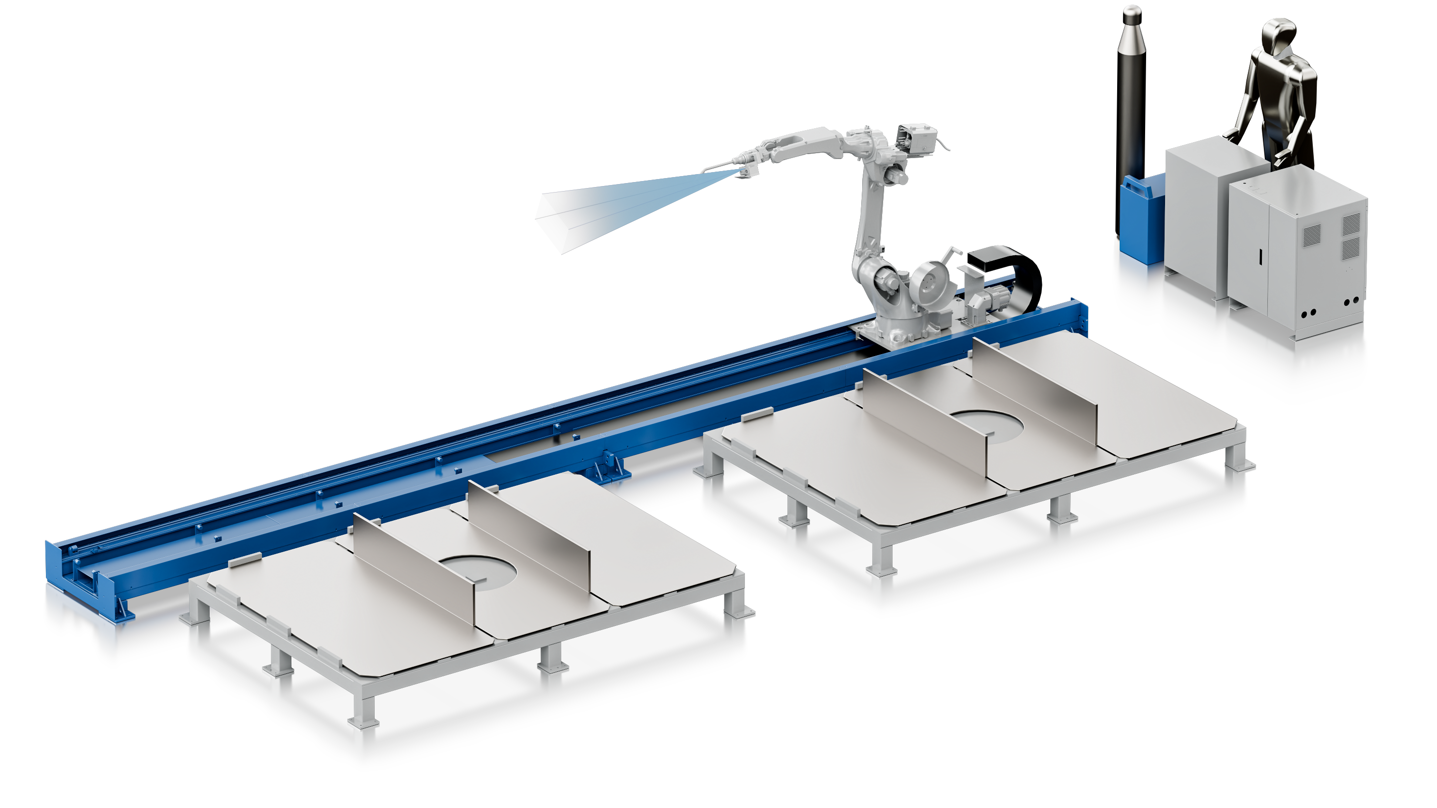 针对钢构行业痛点推出的免示教智能焊接工作站,支持STEP、IGES等格式三维图纸直接导入,系统自动提取焊缝位置、类型、长度等信息并生成焊接路径。配合3D结构光相机逆向建模进行粗定位(获取工件整位姿偏差),再通过激光视觉精定位(识别焊缝起止点与间隙),实现双重补偿机制。机器人搭载行走地轨后焊接范围可覆盖2-6米大型构件,换型时间从传统的数小时缩短至10-20分钟。