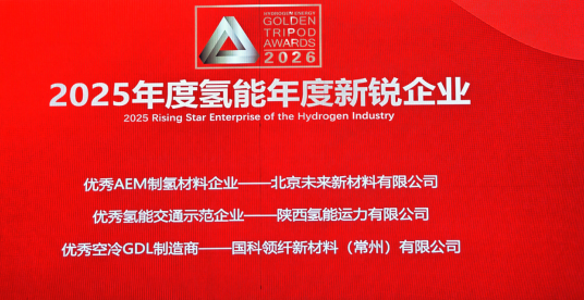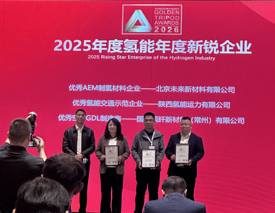 近日,CHEC2026第六届世纪氢能与燃料电池大会隆重召开,国科领纤新材料(常州)有限公司(以下简称国科领纤)受邀参加本次行业盛会,凭借在氢能核心材料领域的技术创新与市场表现,成功斩获重磅荣誉:2025年度氢能年度新锐企业——优秀空冷GDL制造商大奖,再一次彰显了公司在空冷气体扩散层(GDL)领域的领先实力。