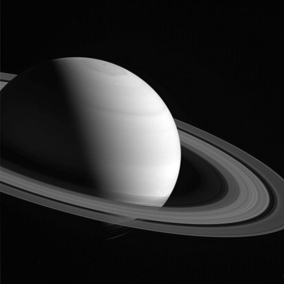 随着土星北半球夏季的临近,环的阴影在整个星球上向南蔓延。在这里,环形阴影似乎几乎遮盖了整个南半球,而行星的北极和它的六面喷射流(被称为“六边形”)被太阳完全照亮了。