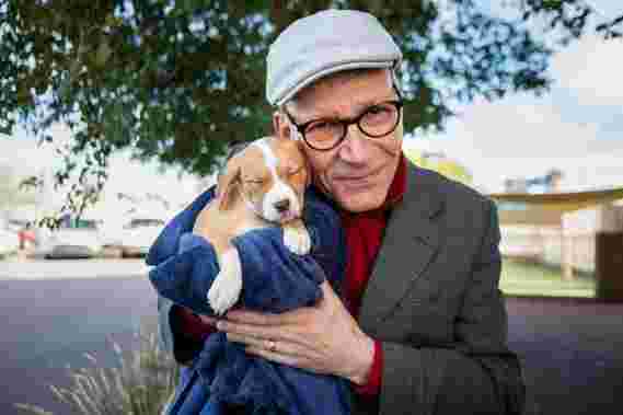 Clive Wynne,亚利桑那州立大学心理学教授,抱着一只小狗。