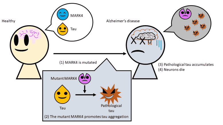 突变体Mark4创造了一种形式的Tau,其在脑细胞中容易累积,导致神经元死亡。