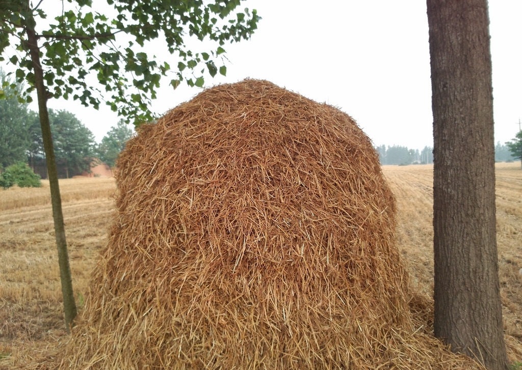 这是一次奇妙而有趣的经历:收割小麦时,稻草翻来覆去,第一次脱粒,第二次将麦秆压平,既滑又方便堆放。田野上临时堆起了一些稻草堆,成了孩子们的战场。高地是双方要争夺的。一场激烈的战斗,胜负尚未决出。稻草堆已经被蹂躏到了地上……如果说孩子们争取的麦秸堆是草稿,那么铁凝写的麦草堆就是最终稿。再大的孩子,也不敢做定稿。堆叠这样的堆栈是相当费力和技术性的。总是有很多人一起工作,选择一个高冷避水的地势,用麦麸打好基础,然后一层层堆放麦秸。堆高时,人要站在堆上,用稻草接住下面人递过来的稻草,摊平,踏实。最后的烟囱可能有三四米高。然后,又被修整整直麦秸垛,叠的粗线条变得清晰漂亮。改天用麦麸和黄泥在麦秆上涂上一层厚厚的龟甲。好吧,让它风吹日晒雨淋,三四年都不会腐烂。堆成的麦秸深受人们的喜爱,动物们也爱不释手。不管是牛还是马,一看到麦秸,一有空就想去揉一揉。牛也磨,驴也磨,有时老喇叭麦秸成堆,就这样蹭来蹭去,顿时散落一地。麦秆堆也很少见。稻草还田,生活变好了。大多数农民主要燃烧液化石油气和电力。麦秸一旦归还,要么返还田间麦秸垛,要么卖给稻草商,他们下乡购买,送到造纸厂制浆。或许有一天,想看麦秆堆,只能在影视作品中寻找。 “麦秸”
