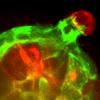 将Twist1表达上皮细胞(红色)侵入周围细胞外基质的实时3D共焦时间流逝电影,然后通过正常肌上皮细胞(绿色)抑制和拉回